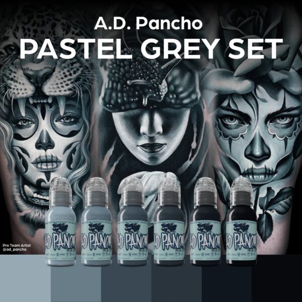 A.D. Pancho Pastel Grey Set -World Famous Tattoo Inks 30ml – 6pc